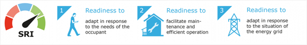 Een ander aspect van de EPBD-IV dat hierin behulpzaam kan zijn is de Smart Readiness Indicator. De SRI geeft een score voor de slimheid van het gebouw op basis van de in het gebouw aanwezige voorzieningen. De SRI richt zicht hierbij op (1) gebouw (2) gebruiker en (3) energievoorziening.
